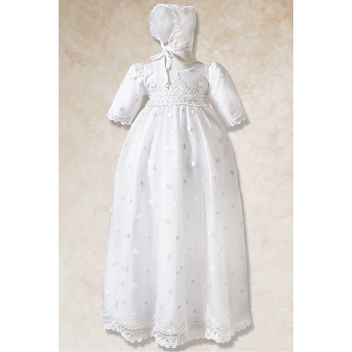 An additional version of transitional christening gowns are baptism jumpers. The jumper matches over your baby's baptism romper is easy to clear away.